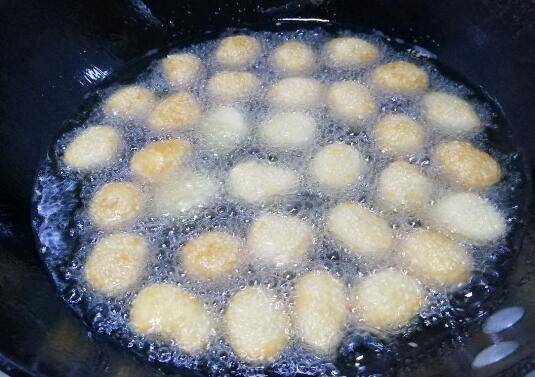 10、颜色稍微变黄捞出,稍微凉一下,再复炸一次即可。