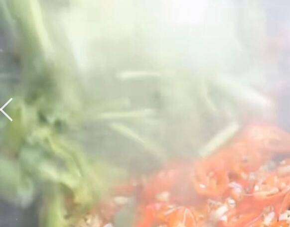 锅油下大蒜子、小米辣、野山椒、中红辣椒碎、盐炒香,下蚝油、生抽、醪糟 (水酒)、鸡精、味精、芹菜炒香。
