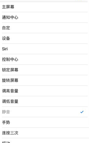 3、直到“自定义”,分配给这个按钮“静音”的功能,通过点击AssistiveTouch开启手机的静音模式。