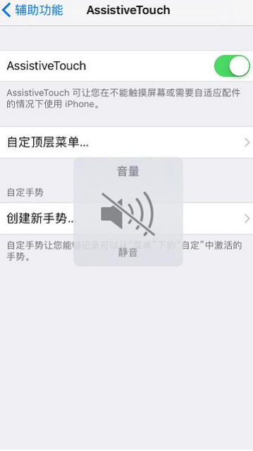 4、设置成功后,点击AssistiveTouch(小白点)后,手机拍照和截屏都没有声音了。