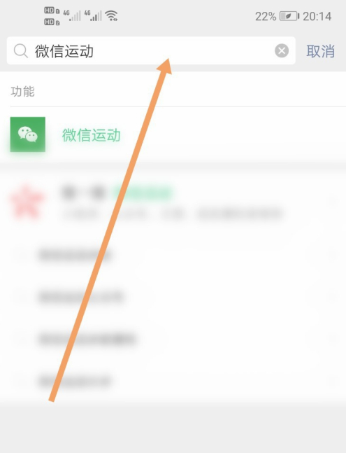 2、在输入框中输入微信运动,点击打开。