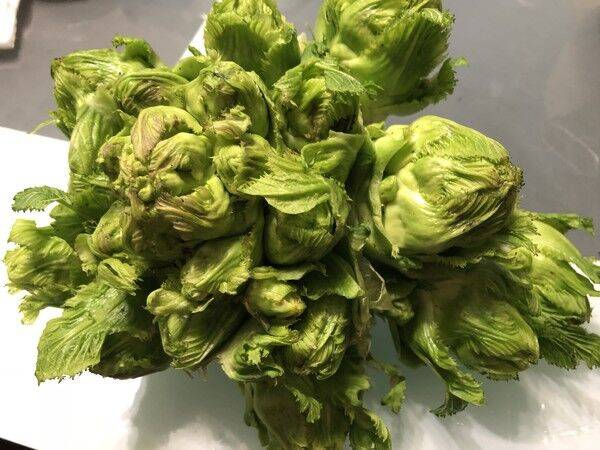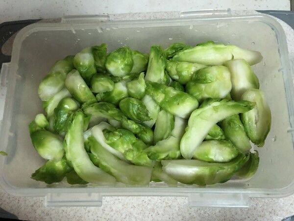 2、用手一个一个把小的儿菜头掰下,洗净。