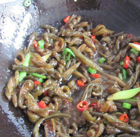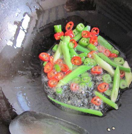 4、加入辣椒姜煸一下。