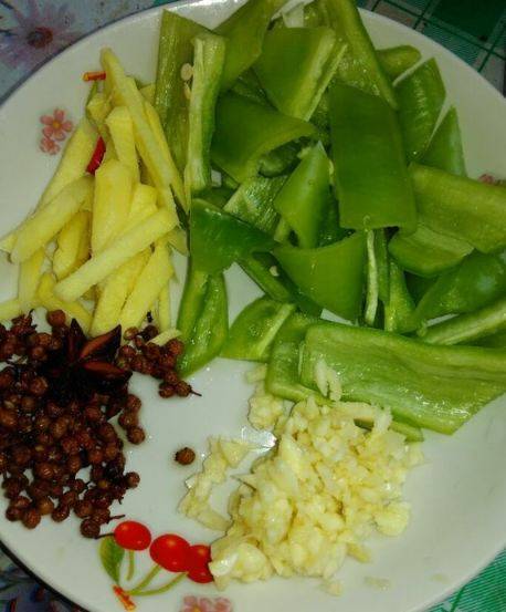3、准备材料,姜丝,蒜泥,辣椒,花椒。
