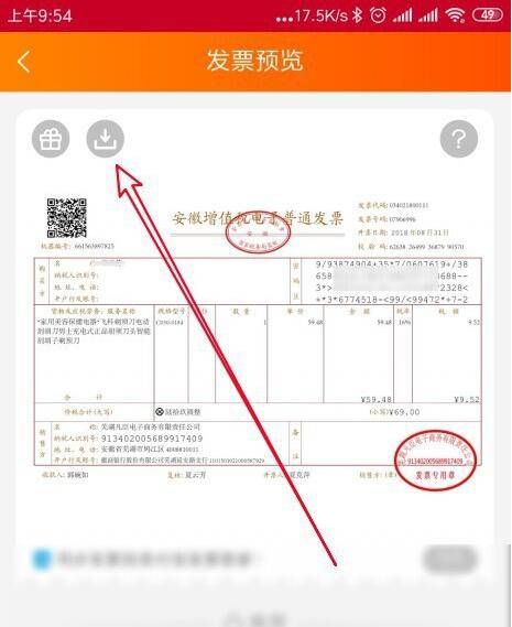 这时就可以看到发票的预览页面,如果想要下载该发票的话,点击顶部的“下载”按钮。