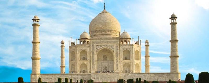 泰姬陵。泰姬陵,是印度知名度最高的古迹之一,世界文化遗产,被评选为“世界新七大奇迹”。泰姬陵全称为“泰姬·玛哈拉”,是一座用白色大理石建成的巨大陵墓清真寺,是莫卧儿皇帝沙·贾汗为纪念其妃子于1631年至1653年在阿格拉而建的。