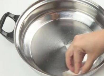 7、擦拭纸巾,使其沿锅以圆周运动。这样既可以吸收剩余的多余油脂,也可以使锅具明显的光泽。