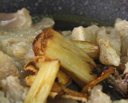 3、热锅放油,放大葱、生姜爆香。