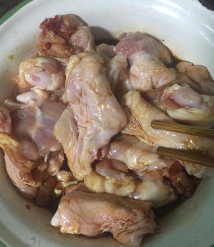 1、准备食材:茨菇10个、鸭翅根8根、油、姜片3片、葱花、八角、茴香、料酒、生抽、老抽、冰糖。鸭翅根洗净一切两段