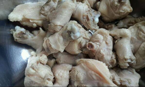 3、水开后,等把血沫煮出来,然后把鸭翅根夹出来备用,锅里水倒掉。