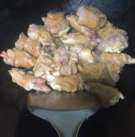 4、放料酒、少许老抽,放生抽继续翻炒一会。