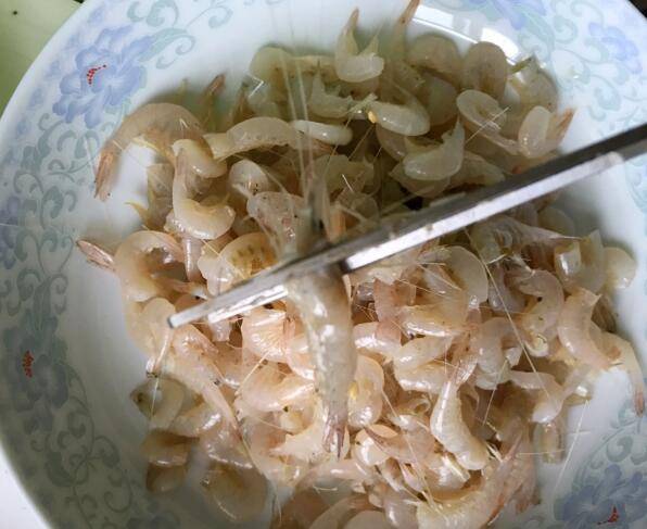 2、把虾须剪掉,这样就不会扎嘴,不需要吐壳。
