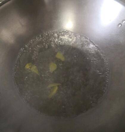 1、准备食材:盐、小茴香、大葱、老姜。锅里放水,姜煮开。