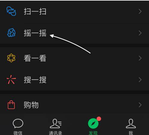 接下来打开微信,然后从“发现”中进入“摇一摇”功能。
