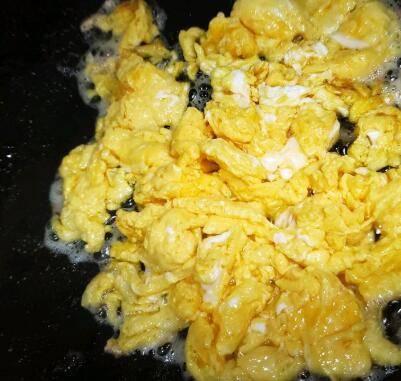 油温约4成热,滑入鸡蛋,炒稍大的块,盛出。