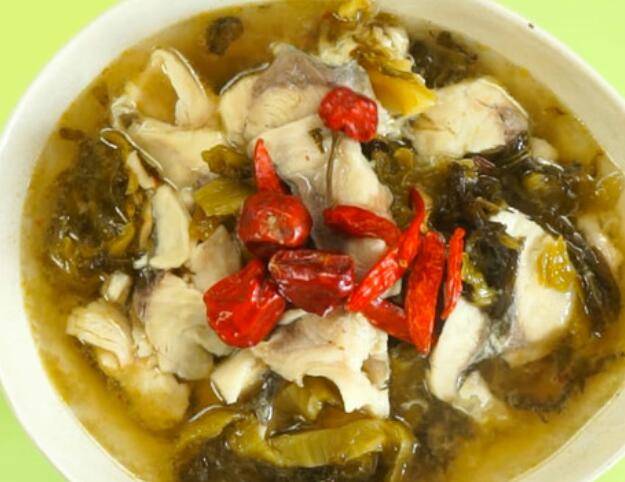 用料:蛋清1个、草鱼片500克、淀粉5克、油8毫升、姜丝适量、葱适量、酸菜500克、鸡粉3克、老抽5克、胡椒粉1克。