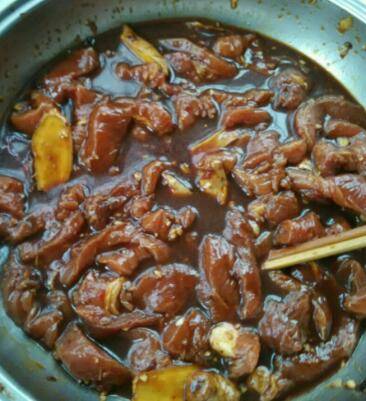 把瘦肉清洗干净,以猪腿瘦肉最佳,切成条状。将瘦肉放进盆里,搅拌均匀,腌30分钟左右充分入味。