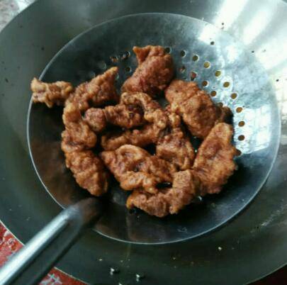下油锅炸,注意需要挑出姜片再炸,然后炸至颜色金黄即可出锅。
