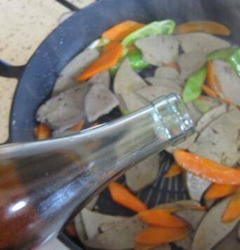 爆锅出香味,炒羊肝,加料酒。老抽翻炒。
