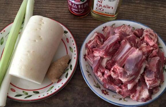 用料:羊排800克、白萝卜半个、葱1棵、姜5片、白胡椒粉1克、料酒1大勺、米醋1勺。