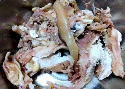 这就是剔出的羊头肉,一个羊头还是出不少肉,这样的羊头肉比瘦羊肉还要好吃呢。