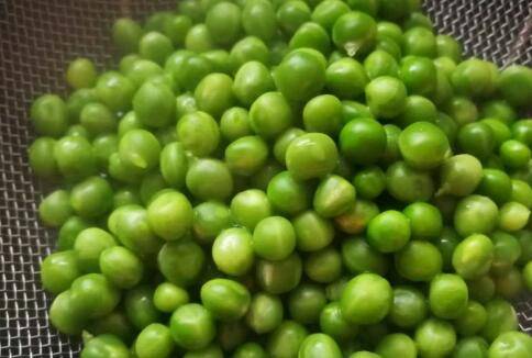 倒入辣椒和姜蒜爆香,倒入焯水后的豌豆大火快速翻炒。