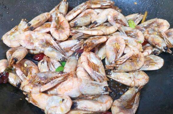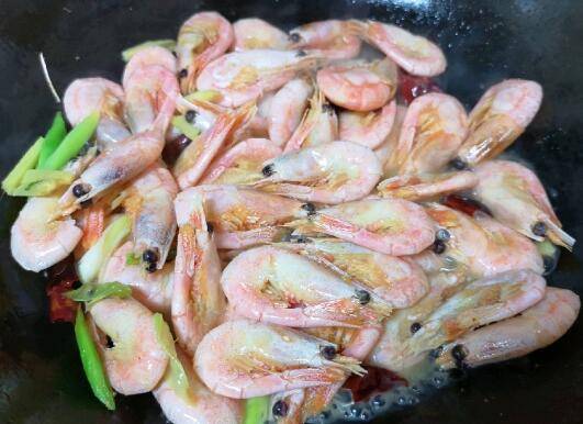 5、下入准备好的甜虾。