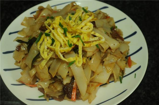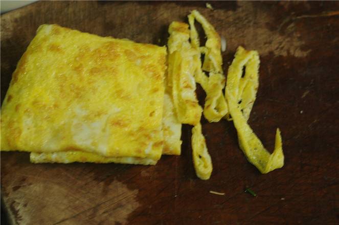 4、鸡蛋饼也切丝。