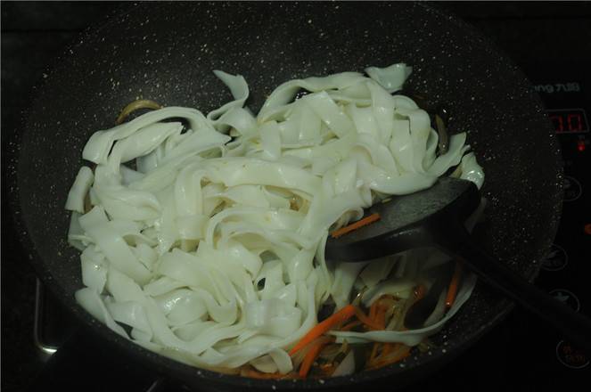 7、将河粉倒入锅里。
