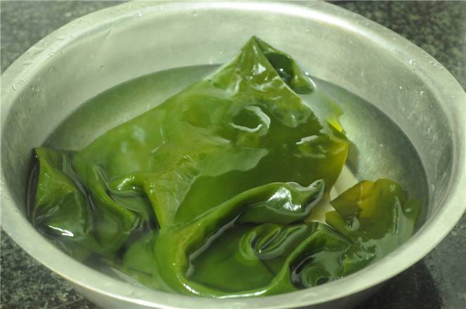 1、海带泡发,洗干净。