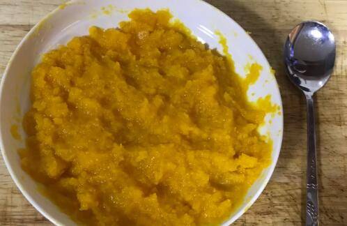 去掉蒸出来的水,用勺子压成泥。