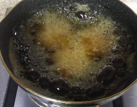 炸至金黄色捞出控油,放进碗里。