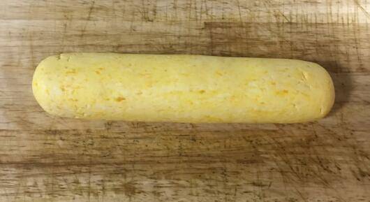 搅拌后揉成光滑的面团,将面团搓成长条。