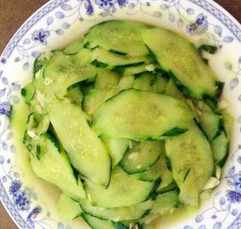 黄瓜2条、蒜3瓣、醋少量、盐适量、糖少量、姜片2片、香葱适量。