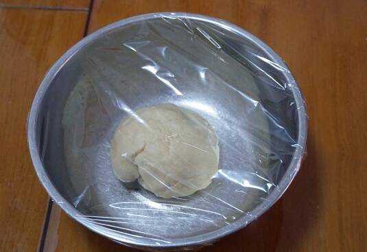 9、包住豆沙,搓圆,盖上保鲜膜再静置十分钟。