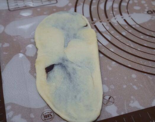 10、用手按扁,用擀成椭圆形。