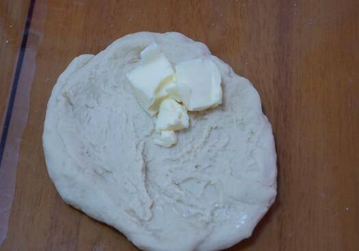 3、接着摊开,放入提前软化的黄油。