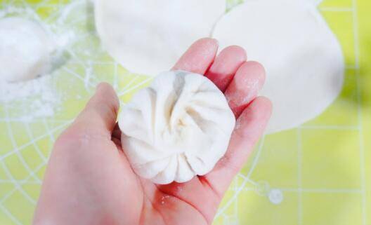 9、将面皮捏成一个包子形状,封口。