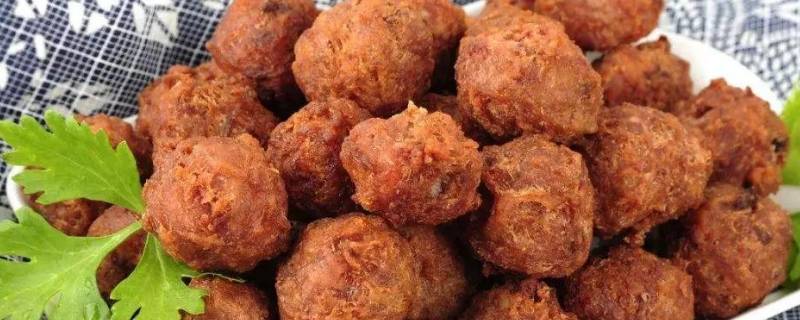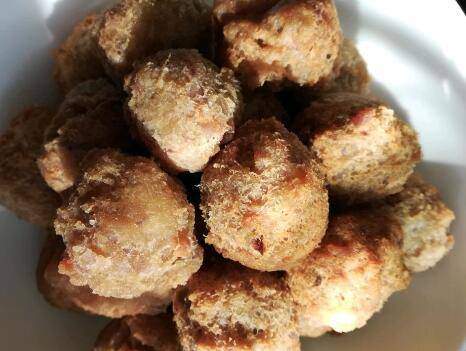 9、热锅起油油温至八成热,下入搓好的丸子开始炸,中小火炸制,炸至金黄捞出控油即可。