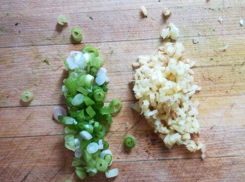 5、小葱白切碎,姜切碎。