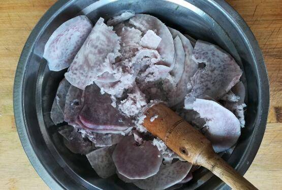 4、蒸好的芋头捣成泥。