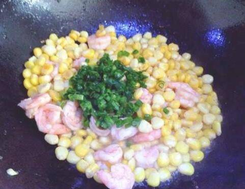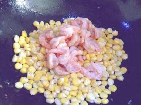 准备食材:玉米粒、基围虾、鸡蛋1个、盐、胡椒粉、葱花。