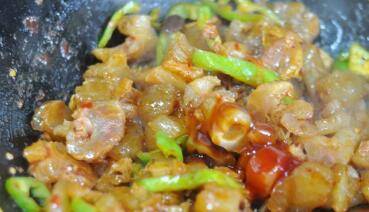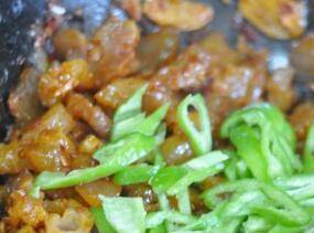 准备食材:熟牛蹄筋、尖椒、油、白酒、葱、花椒、八角、姜、郫县豆瓣酱、蒜、盐、生抽、川香汁、鸡精。