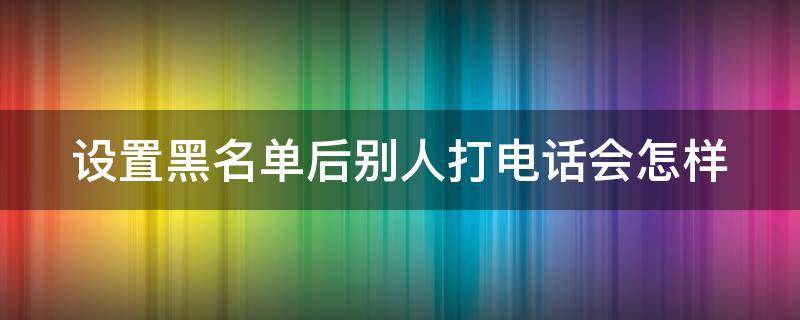 通常将某个电话号码加入黑名单之后,被叫机主的电话不会收到来电提醒,通话记录里也不会有信息显示。而拨打方收到的提示,和对方的手机设置有关,通常有:1、您拨打的电话是空号。2、你拨打的电话正在通话中。3、您拨打的电话已关机。4、您拨打的电话不在服务区。5、您拨打的电话无法接通。6、无提示自动直接挂断电话。