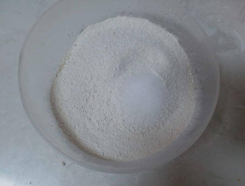 1、山粉放入食盐倒入清水,搅拌均匀。