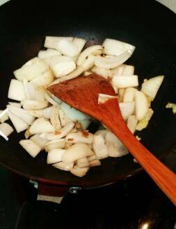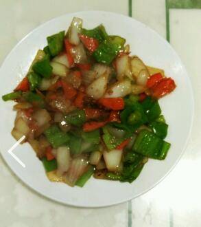 先放圆葱,之后加入胡萝卜、辣椒、蚝油。
