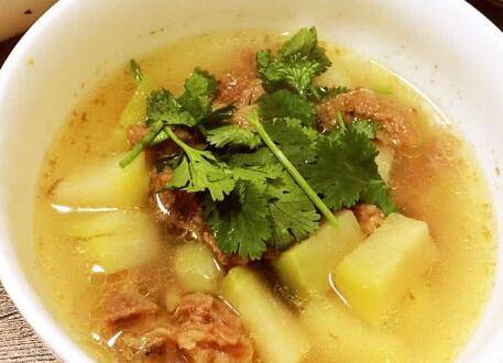 5、压好的牛腩萝卜汤撒上香菜末,吃的时候可以蘸食调料。