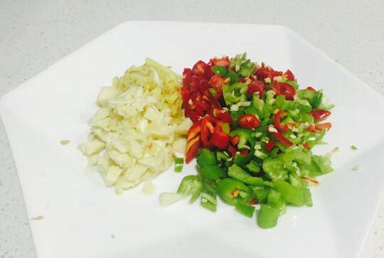 用料:小鱼干100g、葱头一把、姜一小块、蒜头4瓣、青辣椒3个、红辣椒3个、盐两小勺。