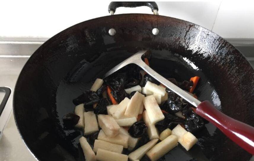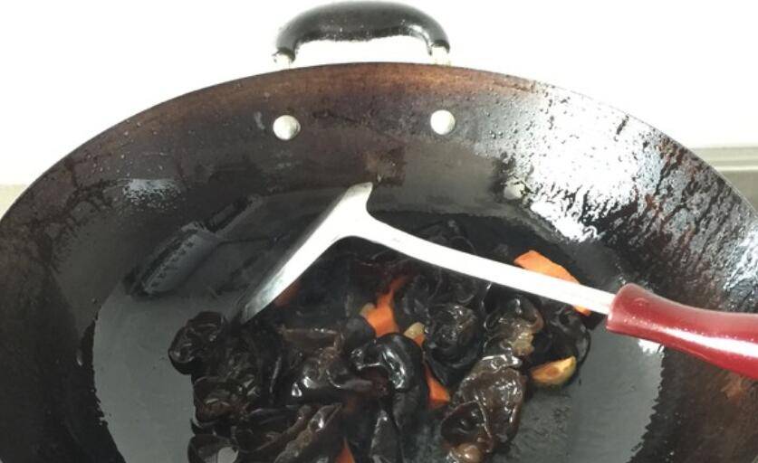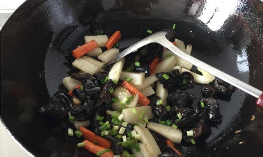 主料:黑木耳100克、胡萝卜半个、山药200克、盐1小勺、鸡精少许、蒜瓣3个、葱2棵。