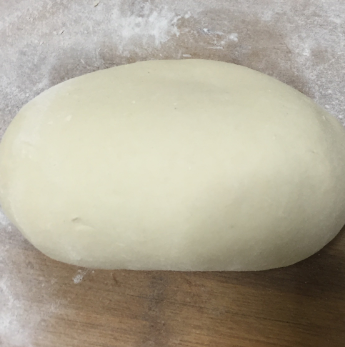 将醒好的面在案板上揉至光滑,用擀面杖进行擀面,边擀边展开涂抹生粉防粘,将面擀至3-4mm厚,切成3cm宽。